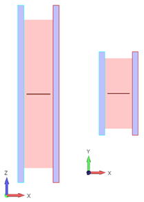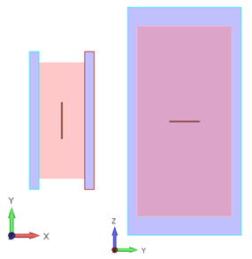 金属線は、正面( ZX面 )から見ると点に見えますが、上面から見ると電極に平行に、側面から見ると水平に見える状態です。